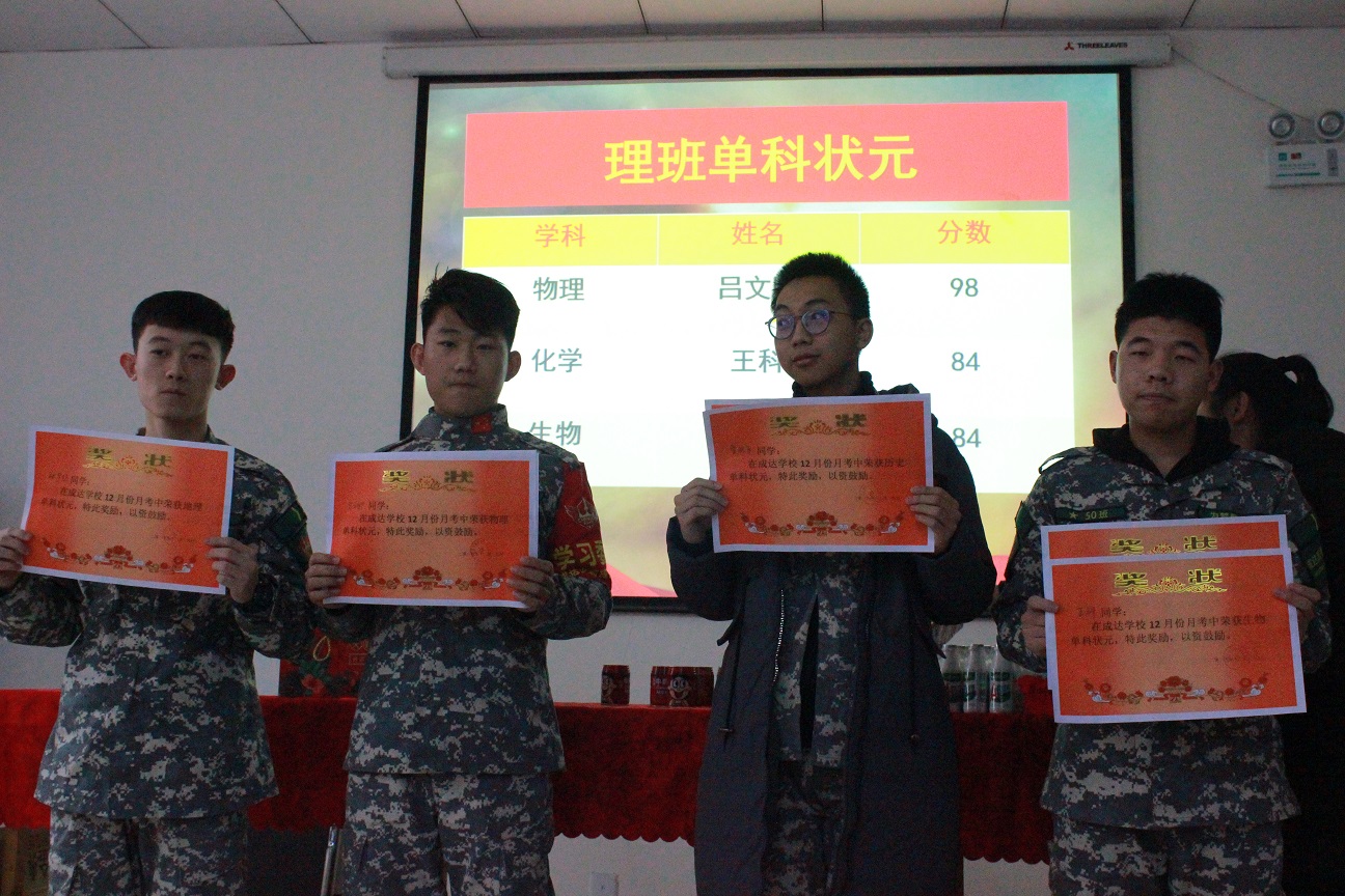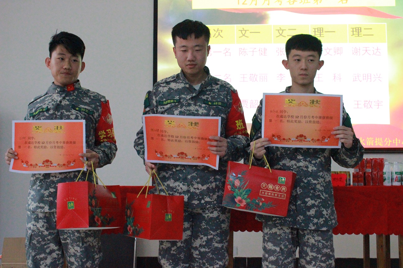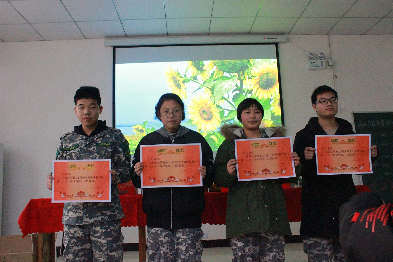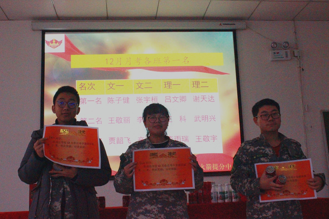 首先颁发12月月考各班第一名