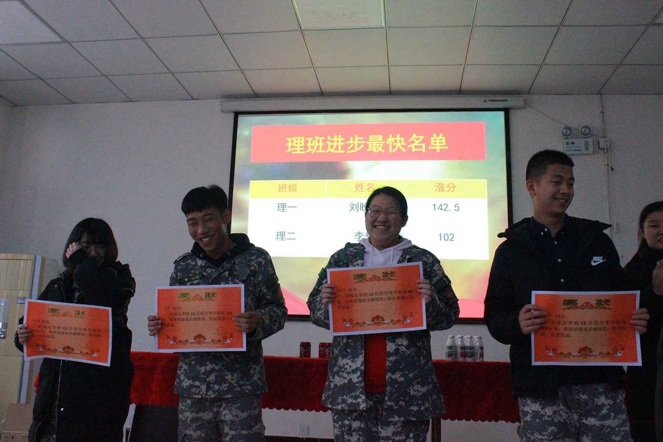 最后请文理班进步最快的学生一同上台